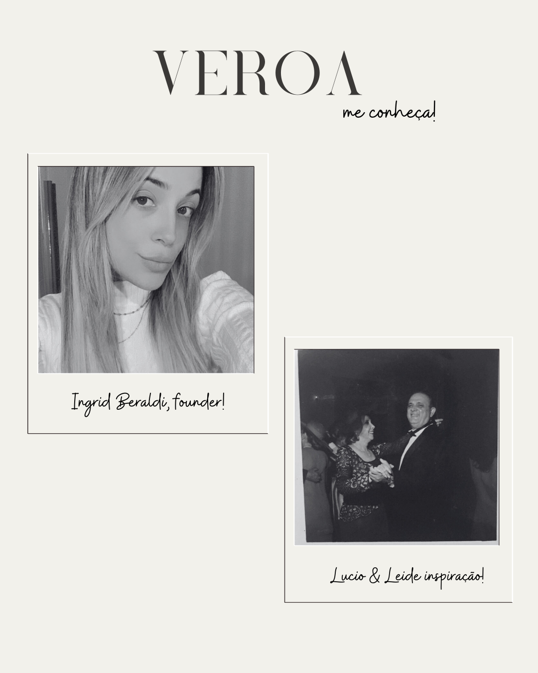 Veroa significa “verdade” em italiano — uma homenagem carinhosa aos meus avós, que vieram da Itália e deixaram um legado de autenticidade, força e beleza que me inspira até hoje.
